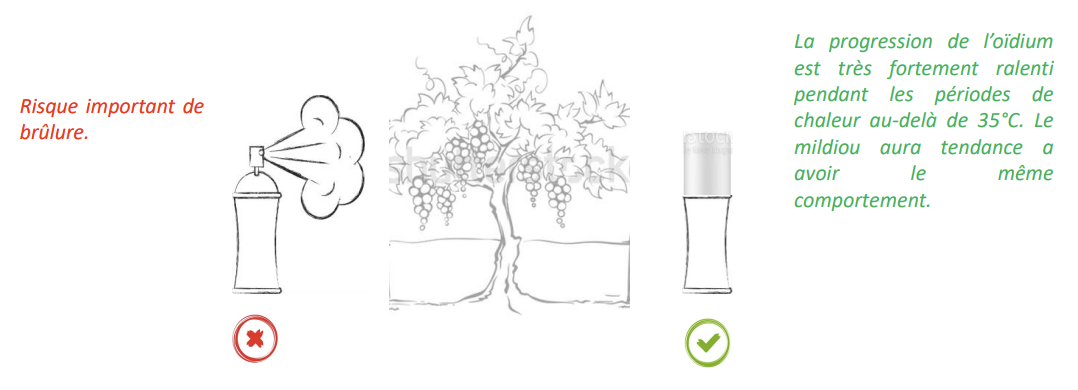- Une température au-delà de 35°C. La température optimum d’efficacité du soufre se situe autour de 25°C.